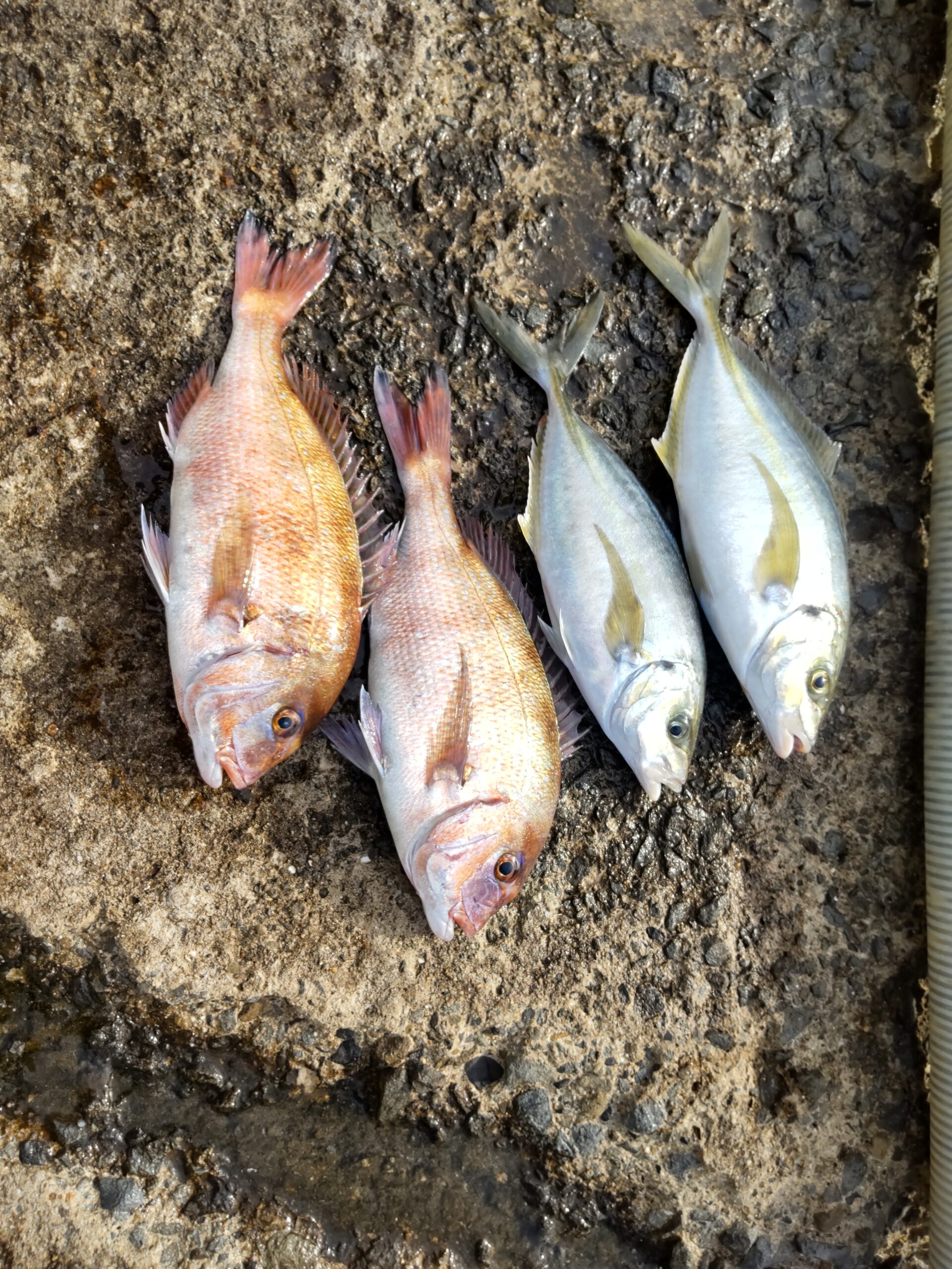 日付 2025/12/31(水) 釣り人 ムスタ様 大きさ・数 2尾・2尾 魚種 シマアジ・マダイ エサ 生ミック ポイント Eポイント 2ヒロ