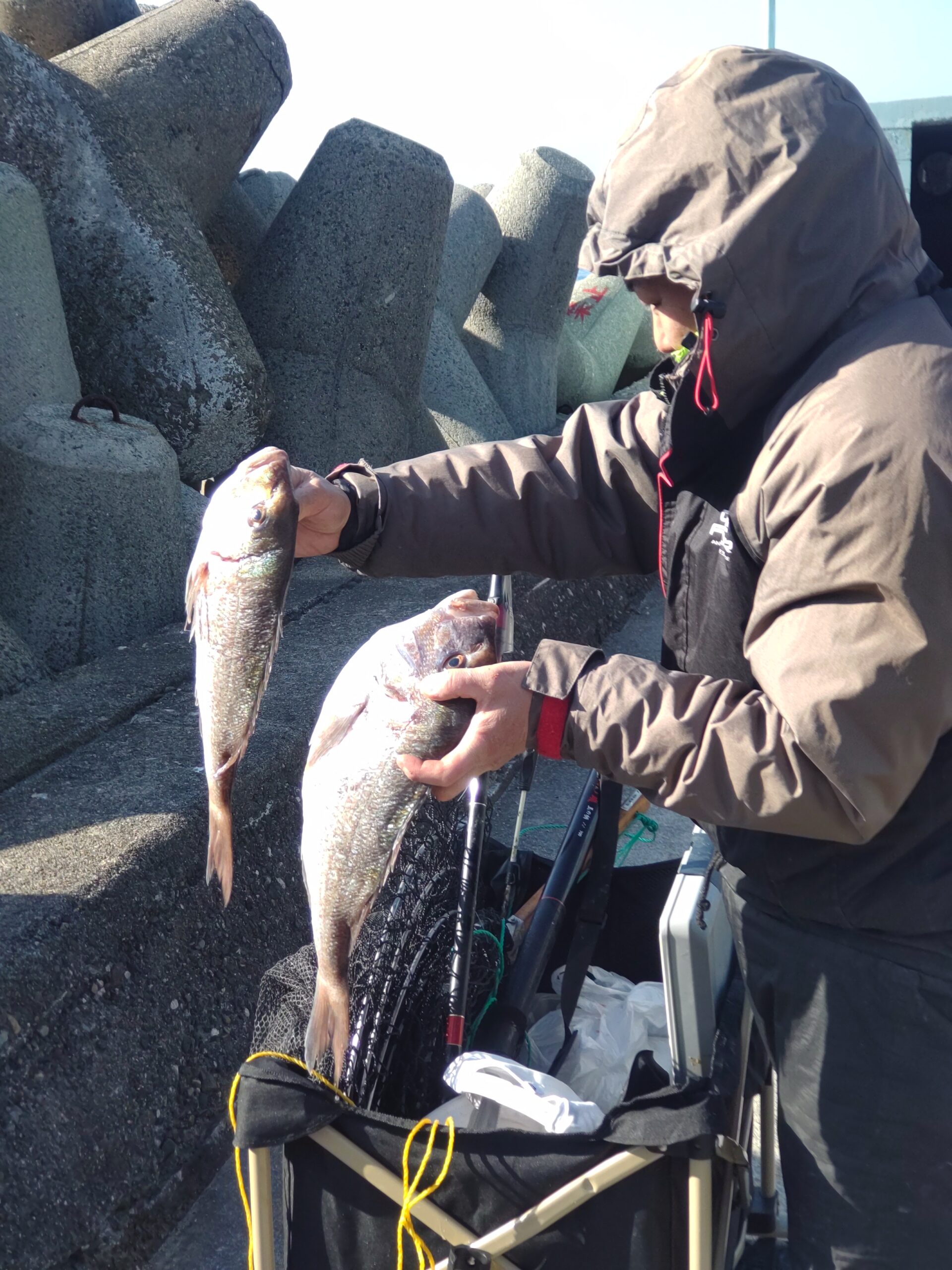 日付 2026/1/18(日) 釣り人 片岡様 大きさ・数 2尾 魚種 マダイ エサ イワシ ポイント Bポイント 底