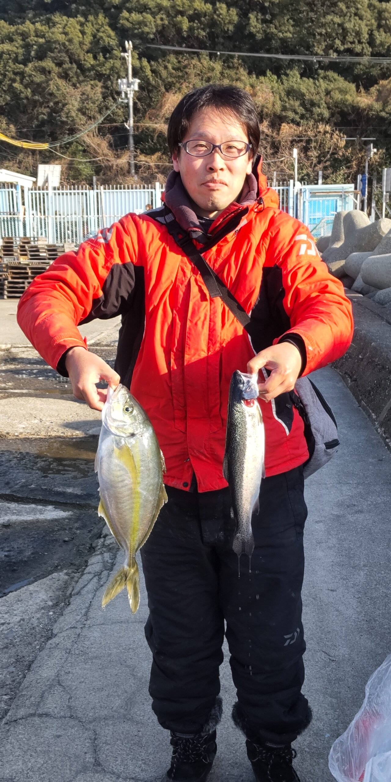 日付 2026/2/21(土) 釣り人 浜口様 大きさ・数 1尾・1尾 魚種 シマアジ・トラウトサーモン 大きさ エサ スピナー ポイント Bポイント