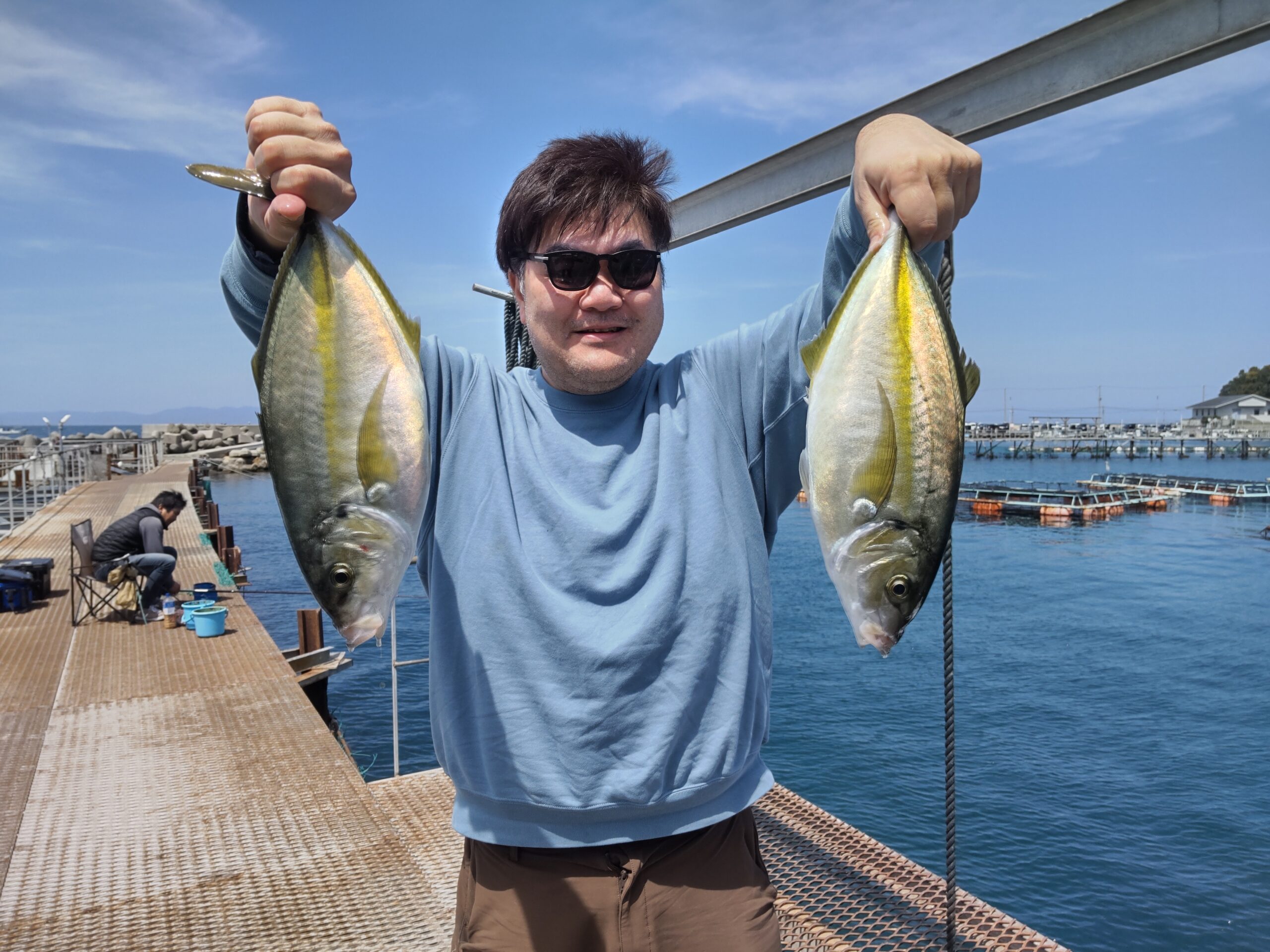 日付 2026/4/12(日) 釣り人 北出様 大きさ・数 2尾・1尾 魚種 シマアジ・マダイ・サバ 大きさ エサ マダイイエロー ポイント Bポイント 1ヒロ